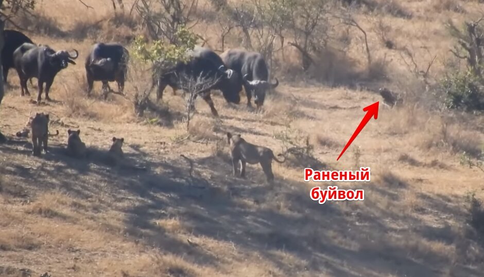 Львы против буйволов. Свежее видео о том, как последние выиграли. Они спасли раненого собрата
