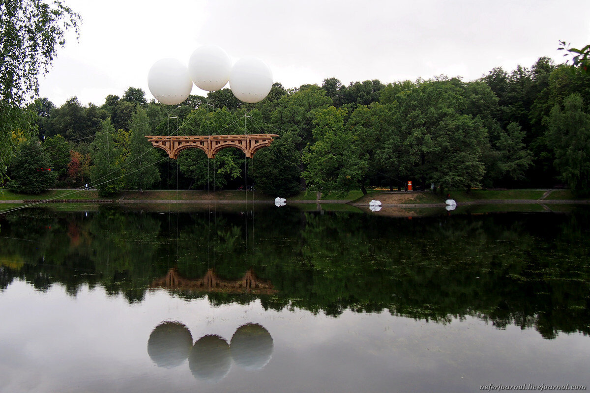 В парке Останкино над прудом теперь висит ЭТО. Большой такой картонный мост.
