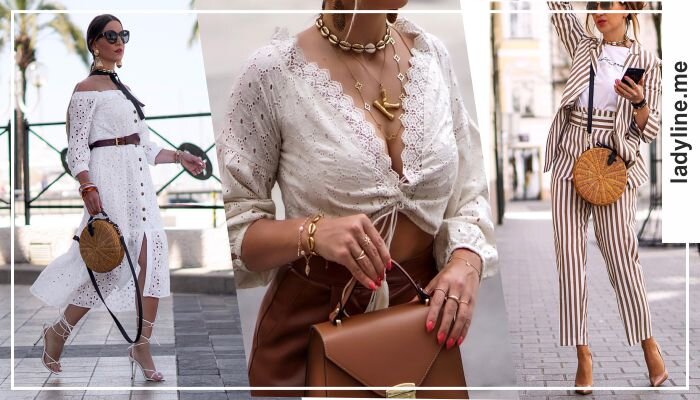 Лето – самое лучшее время для экспериментов. А значит можно примерить новые образы или вообще сменить стиль в одежде. Наши советы и рекомендации в этом помогут. Летние луки 2019 отличаются своей непринужденностью, лаконичностью и элегантностью. Поэтому не вызовут каких-либо затруднений при носке. Здесь можно встретить различные стили: casual, офисный, классический или оверсайз. Значит в представленных образах можно будет отправиться не только на работу, но и романтический ужин или просто прогуляться по парку. Белое ажурное платье со спущенными плечиками отлично подчеркивает стройную фигуру. Дополните его контрастным ремешком и босоножками на шпильке. Необычная сумочка и украшения придадут образу утонченности. Для городских модниц подойдет сочетание полосатой юбки с пуговицами впереди, джинсовой куртки и футболки зеленого цвета. Дерзости образу придает узел на животе и необычные украшения на шее. Стильные белые босоножки с лентами на щиколотке подчеркивают красоту ног. Нотку стиля в