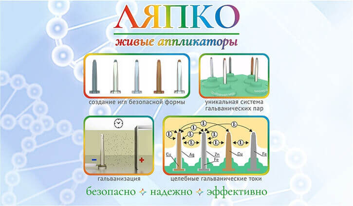 Ответ. Организм человека представляет собой сложный биоколлоид, пропитанный электролитами и содержащий как положительные (катионы), так и отрицательные ионы (анионы). Интенсивность воздействия регулируется самим организмом. Болезненный, воспаленный участок кожи отекает, в нем много жидкости, и при соприкосновении с аппликатором происходит интенсивная реакция с выделением большого количества пота и тепла. При контакте с кожей на поверхности игл аппликатора происходит множество физико-химических изменений, которые характерны для изменений под воздействием электрического и ионных токов. В результате на иглах образуются окисные пленки и возникает эффект гальванизации (проникновение незначительного электротока и металлов в организм человека). При этом на кончиках игл возникают гальванические токи в одной точке. Между иглами из разных металлов в коже возникают межигольчатые гальванические токи, величина которых зависит от проводимости кожи, насыщенности ее электролитами. Гальванизация способствует улучшению обмена веществ, усиливает восстановительные процессы, оказывает рассасывающее действие, помогает выработке биологически активных веществ, снижает болевую и тактильную чувствительность кожи. Лечебная эффективность аппликатора заключается в своеобразном возникновении гальванического тока, который заряжает ослабленный организм энергией и разряжает место болезни. Благодаря этому эффекту происходит электрофорез металлов, и организм усваивает необходимые ему микроэлементы. Приведем названия только нескольких микроэлементов, которые применяет Ляпко, и обозначим их роль в организме человека. Железо повышает сопротивляемость к заболеваниям, укрепляет кожу, снимает усталость, играет важную роль в кроветворении (синтез гемоглобина), тканевом дыхании, профилактике и лечении анемии. Медь улучшает обмен железа, способствует образованию эритроцитов. Цинк принимает участие в процессе роста организма, в работе иммунной системы, нормализует работу центральной нервной системы, ускоряет заживление ран и участвует в образовании инсулина. В организме при тканевых метаболических процессах происходит перикисное окисление липидов (ПОЛ), в результате чего образуются недоокисленные продукты (перикисные радикалы), которые могут разрушать тканевые элементы - стенки сосудов, клетки тканей органов. В противовес этим процессам для защиты тканей и сосудов в организме существует антиоксидантная система (АОС). В этом механизме ПОЛ – АОС работают два фермента: феррискорбон, состоящий из железа и аскорбиновой кислоты и церулоплазмин, состоящий из меди и белка плазмы. Польза иглоукалывания очевидна: организм путем прямого воздействия через кожу получает недостающие микродозы необходимых микроэлементов.