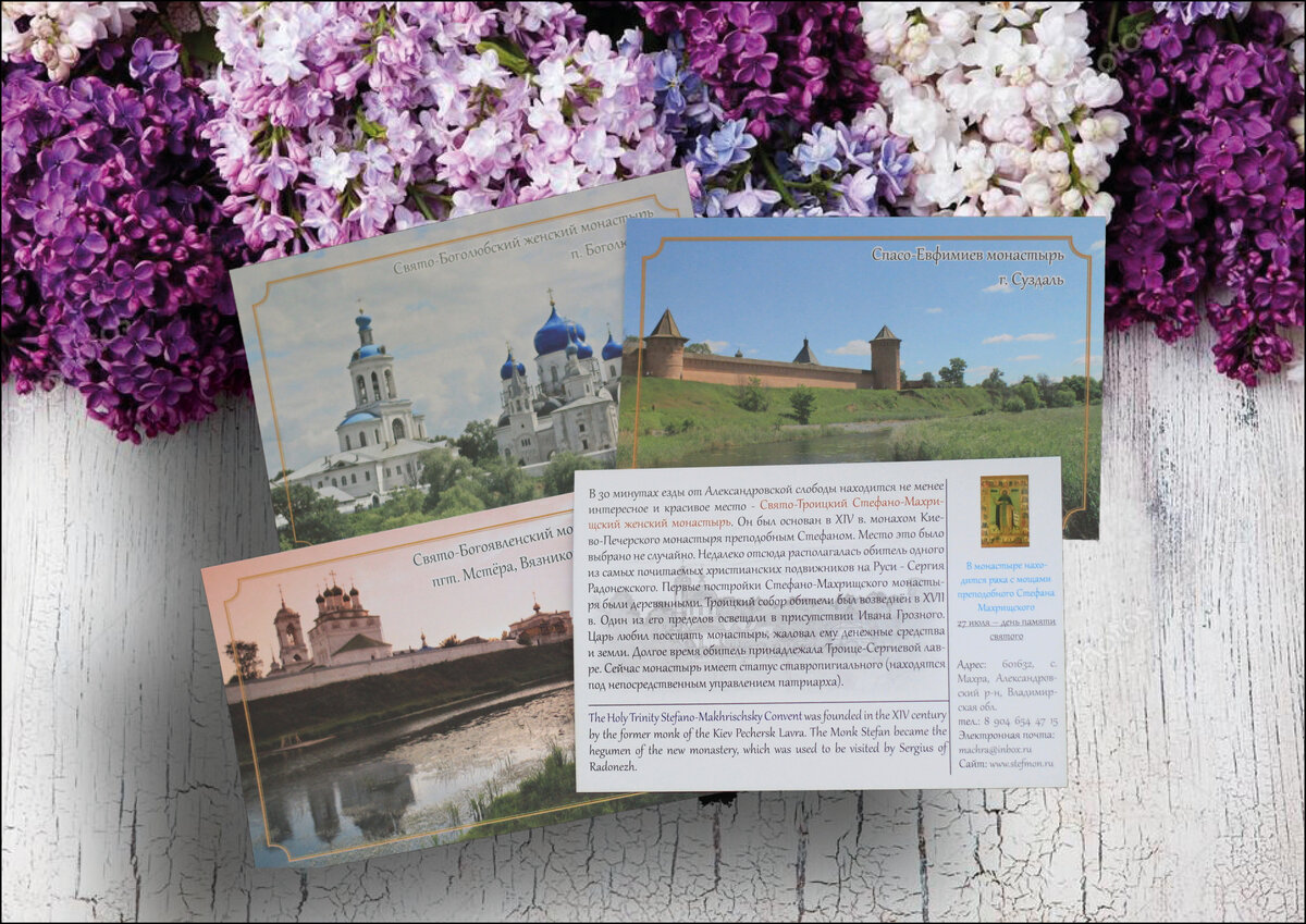Предлагаю приобрести у нас наборы открыток с видами Владимира и монастырей Владимирской области. Возможно, мы их больше не будем запускать в производство - это будет просто экономически невозможно.