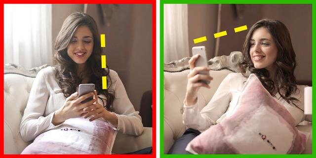 Телефоны являются самыми популярными устройствами, и то, как мы их держим, напрямую влияет на наше здоровье. При длительном удерживании его возле груди с согнутой шеей развивается нечто, называемое «шея с надписью». Это положение совсем не расслабляет вашу шею и может вызвать скованность шеи, боль, мышечную слабость и головные боли.