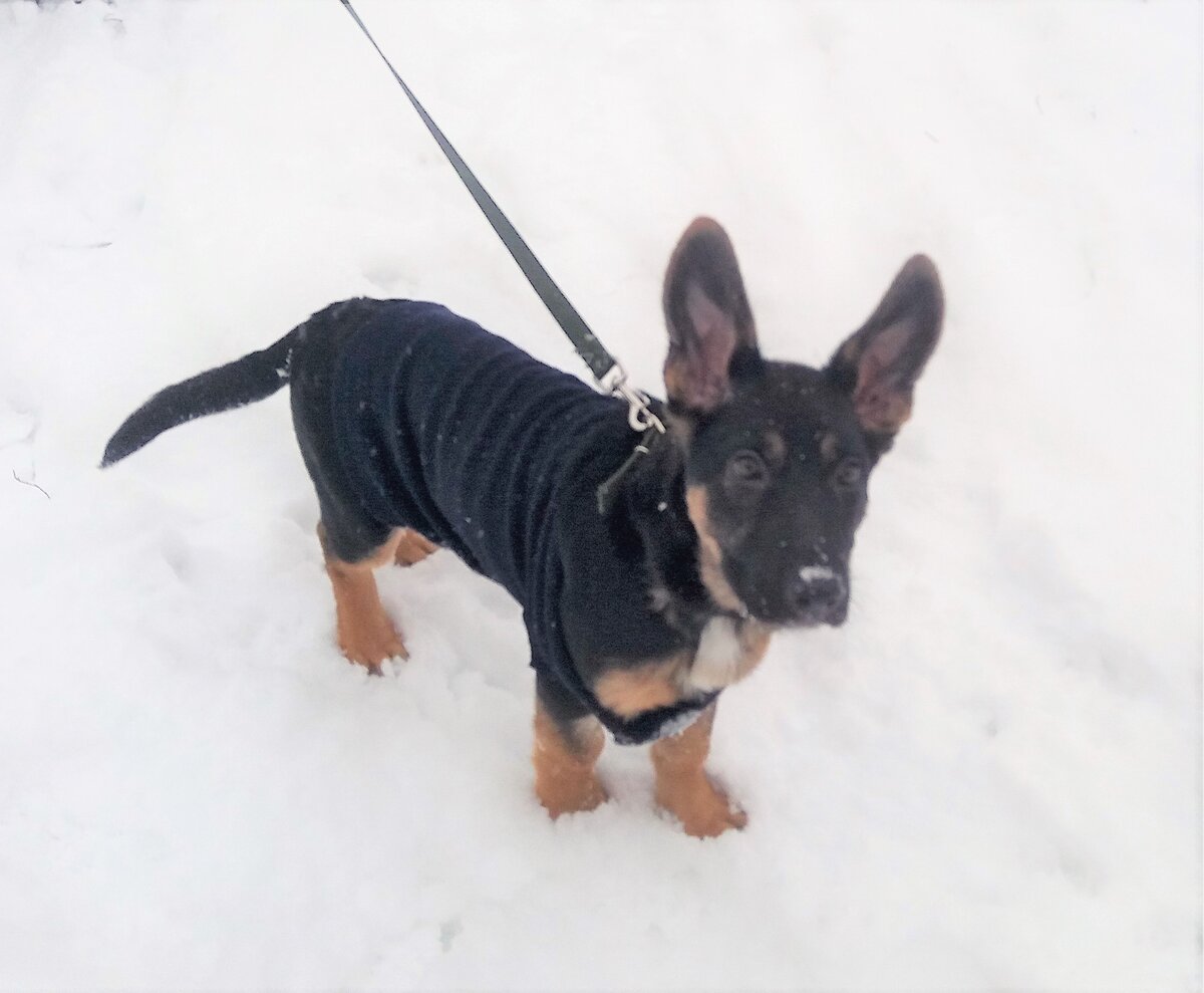 Кейси вышла на улицу зимой. По сугробам в лесу носилась за большими собаками, приставала ко всем, чтобы с ней поиграли. Какие там 20 минут - по пять часов в день проводила на улице и всё мало было. Домой приходила и продолжала веселиться.
