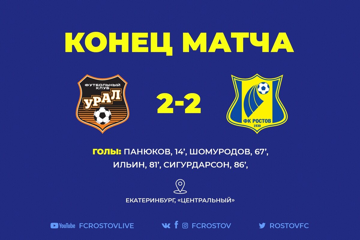 После перерыва «Ростов» увеличил давление на ворота «Урала» и сравнял счет. На 67-й минуте отличился Шомуродов. Форвард в касание красиво пробил после передачи Байрамяна. Стоит отметить, что это уже третий мяч Элдора в этом сезоне.