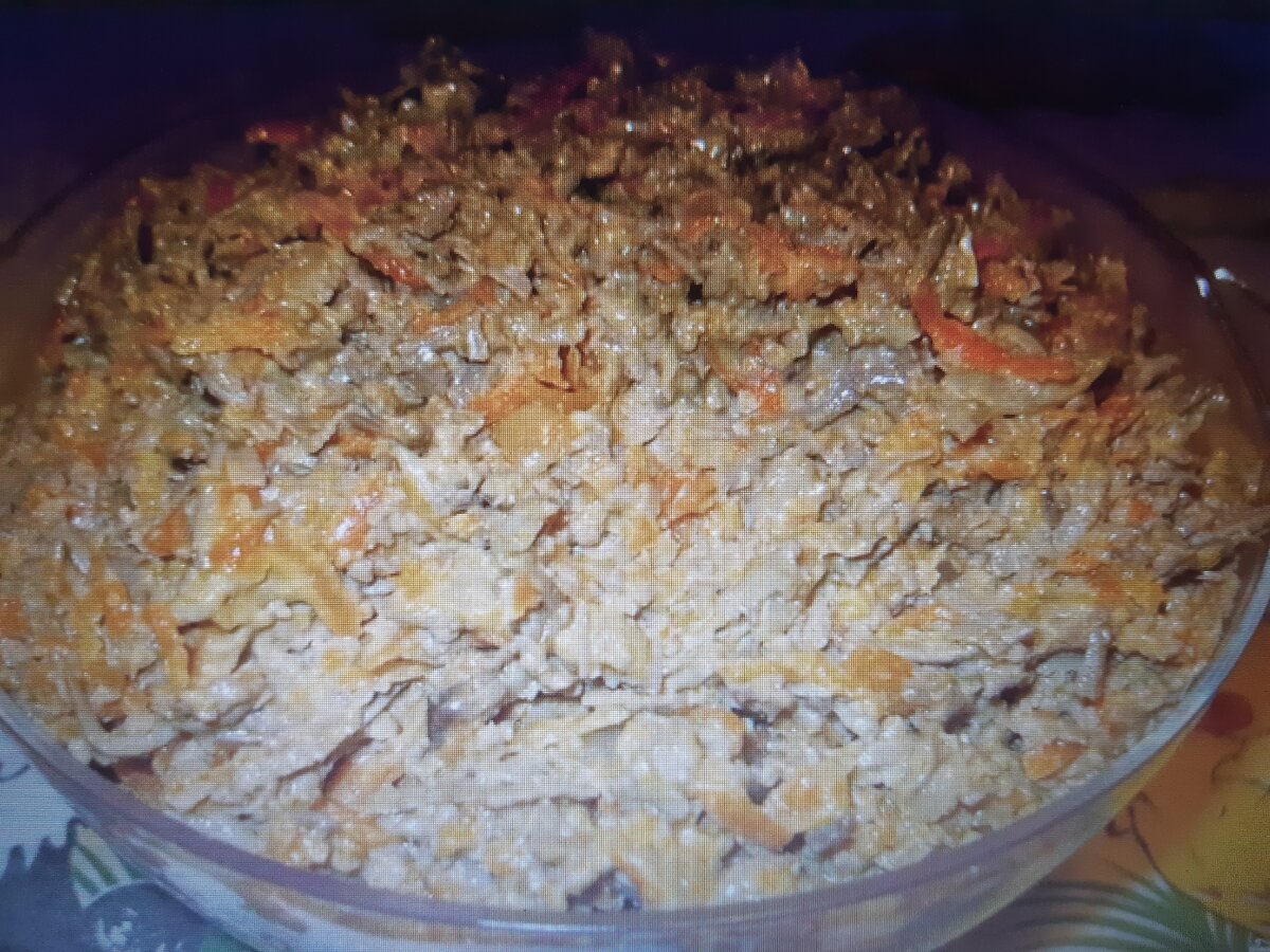 Этот простой, но вкусный салат очень полюбился моей семье. Для него нужно: Печень отвариваем в подсоленной воде. Морковь трем на терке, лук режем мелко и все это пассируем на сковороде с небольшим добавлением масла до готовности. Печень также трем на терке. Все ингредиенты смешиваем, солим и заправляем майонезом.