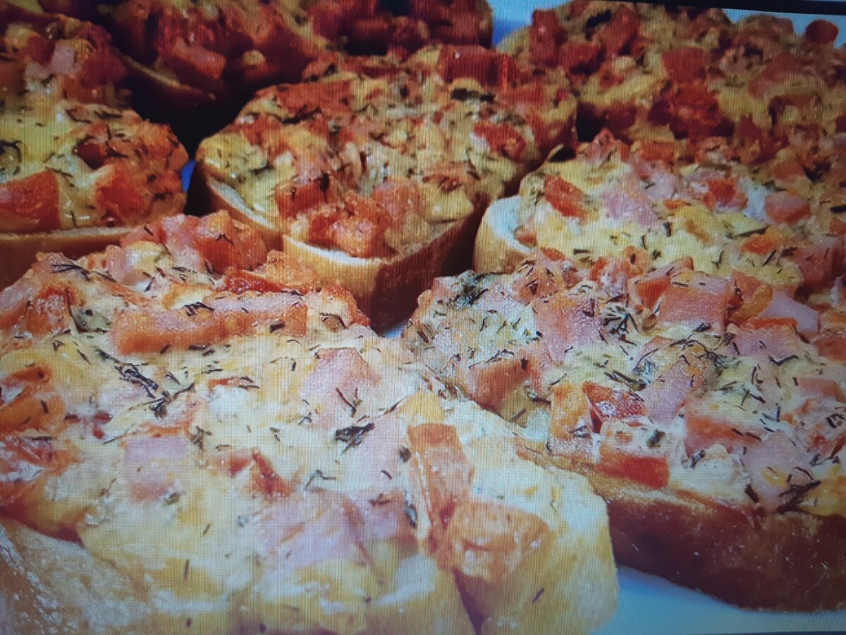 Делается все как на пиццу, только это бутерброды. Необходимо будет: Делаем сначала заправку - помидоры режем кубиками, колбасу также, лук мелко шинкуем, сыр натираем на терке. Помидоры, колбасу, смешиваем, немного солим, добавляем кетчуп и майонез, перемешиваем. Берем батон (я покупаю сразу нарезной), раскладываем на противень (я выкладываю на фольгу) и на каждый кладем заправку, сверху посыпаем тертым сыром. Запекаем в духовке до готовности, минут 30-40. Главное, не проследите, а то подгорит.
