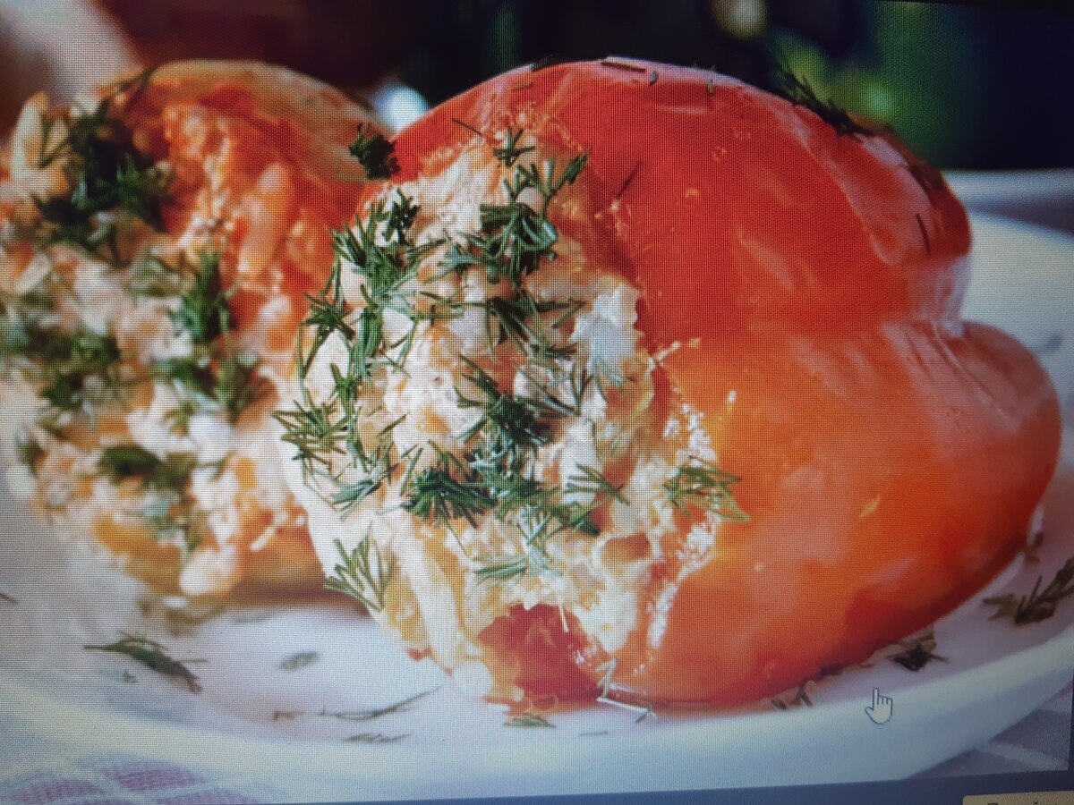 Нам потребуется: Перец моем, аккуратно вырезаем верх (не выбрасываем), удаляем внутри все прожилки, промываем. Рис варим до полуготовности, остужаем, процеживаем. Лук мелко шинкуем. Смешиваем лук с фаршем, добавляем рис, перемешиваем, солим. Подготовленный перец аккуратно начиняем нашей заправкой, сверху кладем верхушку. Перец можно тушить в мультиварке или на плите. Примерно 1 час. Ну то есть, до готовности.