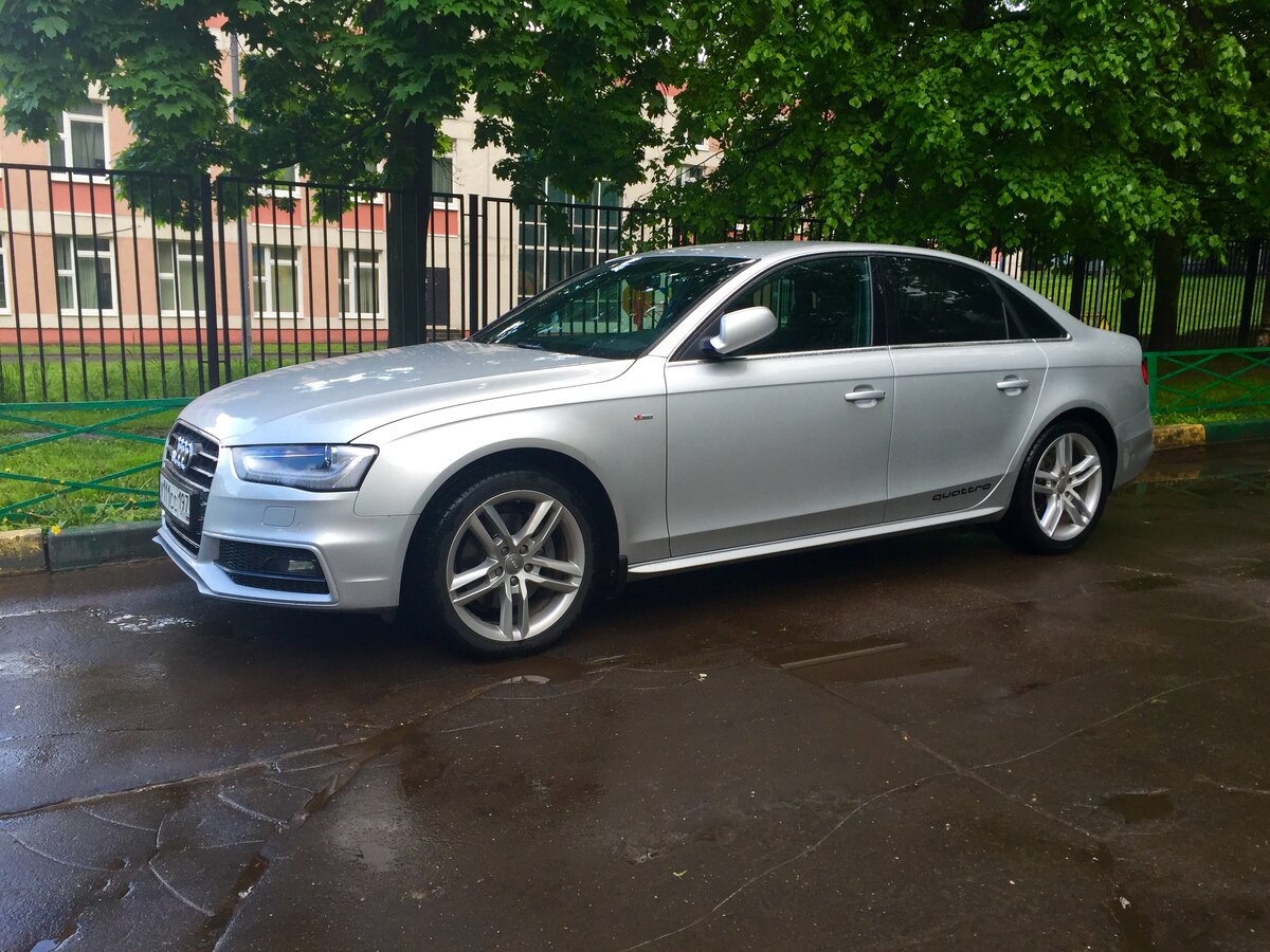 В мае месяце 2015 г купил себе все-таки AUDI A4 quattro. Авто 2012 года выпуска, с сентября, т.е. машина уже в рестайлинге, но еще с двигателем Gen 2 (211 л.с.) Покупал я в Ауди Центр с пробегом 37200 по программе Audi Plus, следовательно, 1 год гарантии еще .