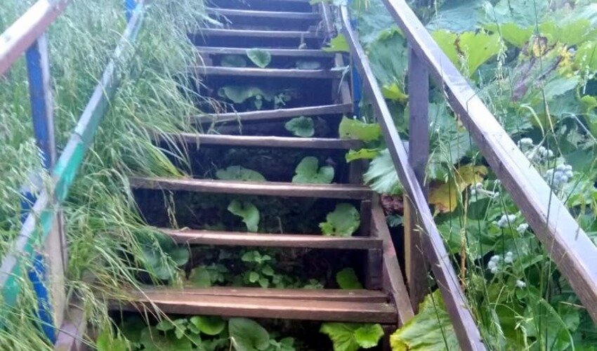Люди ежедневно преодолевают разбитый двор и тренируют навыки паркура на лестнице