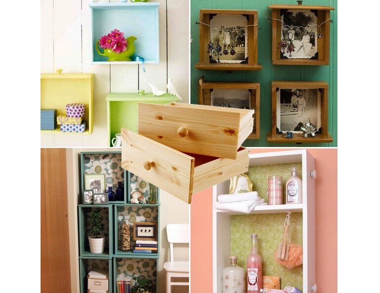 Полки в доме никогда лишними не будут, они пригодятся для любой комнаты. У моей мамы немало их расставлено в кухне, на которых красиво расположились баночки с чаем и специями, а также в спальне — где она хранит все книги. При этом полочки не обязательно нужно покупать, вы можете смастерить их из своих старых вещей.. Старые ящики Комод пришел в непригодность, вы собрались вынести его на свалку — мешать я не стану, но оставьте хотя бы ящики. Из них получатся очаровательные полки, достаточно только повернуть их любой понравившейся стороной и прикрепить к стене. Деревянные поддоны Такие изделия можно получить, когда покупаете рассаду, стройматериалы или что-нибудь подобное. На самом деле их достаточно дешево можно и перекупить, если загоритесь такой идеей, или спросить у соседа. Ящики необходимо очистить, покрасить, или залакировать и развесить на стену. Любая доска Пожалуй, это самый распространенный вариант. Если после ремонтных работ осталась доска, то просто обработайте ее и прикрепите