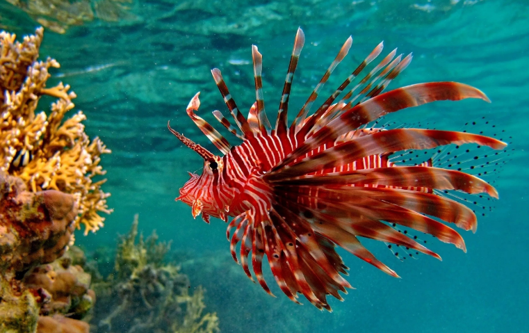Рыба-лев известная также под названием крылатка-зебра. Эта рыба, также, как и рыба-ёрш, относится к семейству скорпеновых. Крылатка-зебра предпочитает жить у рифовых зон Тихого океана, а также Индийского. В последе время зафиксированы очаги распространения рыбы-льва у Атлантического побережья Соединённых штатов. Как утверждают учёные – это следствие урагана Эндрю, который бушевал в 1992 году.