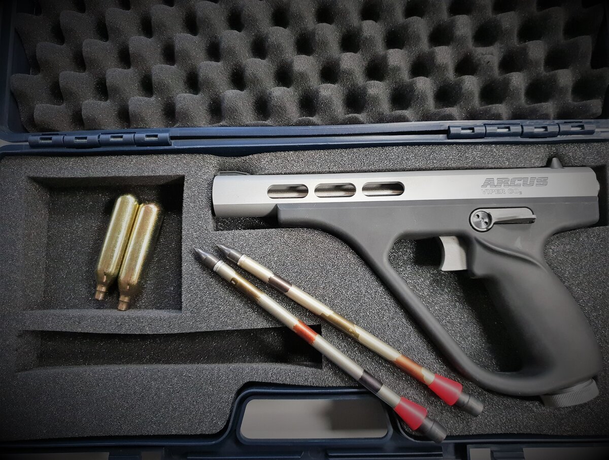 В 2017 году компания "Semex" из Австрии, начала выпуск довольно интересного пистолета под названием " Arcus Arrowstar ". Принцип действия данного оружия основан на использование энергии сжатого воздуха. Баллончик CO2 весом 16 грамм вставляется прямо в пистолетную рукоять как и в большинстве пневматических пистолетов. Arcus Arrowstar снаряжается дротиками весом по 9.5 грамм, имеющих длину 20.5 см, и диаметр 5.9 мм. Выпускают три варианта пистолета разной мощности : 7.5 ,10 и 17 Джоулей. Нaчaльнaя ckopocть пoлeтa дротика самого слабого варианта равна 40 м/c, а самого мощного 60 м/с. Данная модель за границей в свободном доступе, любой желающий возрастом от 18 лет может спокойно купить этот пистолет без какого либо разрешения. Модель продается в специальном кейсе и стоит около 400 евро, в комплект входят три дротика, и баллончик с газом. При желании имеется возможность отдельно докупить приклад и планку вивер (на которую устанавливается оптический прицел). Пистолет-арбалет это как м