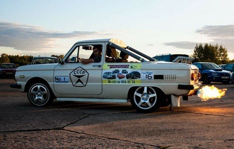"Запорожец" уже давно вошел в разряд культового автомобиля. Сейчас классикой, практически полностью пропавшей с автомобильных дорог, считается не только самый первый ЗАЗ-965, но и более позднике ЗАЗ-966 и ЗАЗ-968. Сегодня вы не увидите вылизанные автомобили, владельцы которых пытаются сохранить их в оригинальном состоянии (хотя, безусловно, таких немало). Вместо этого я покажу вам 11 самых безумных тюнинг-проектов на базе "Запорожца". Возможно вы знаете, что Запорожский автозавод выпускал небольшими партиями пикапы на базе ЗАЗ-968М, которые назывались ЗАЗ-968МП. Но этот автомобиль — самоделка. Он переделан в пикап из самого обычного "968-го". Ему добавили литые колесные диски, а также провели апгрейд двигателя. Этот забавный кабриолет фиолетового цвета, на самом деле, не является "Запорожцем". Это BMW 3-серии 1985 года, стилизованный под ЗАЗ-968М. Под капотом (на привычном месте спереди) находится "бэмвэшный" 2,8-литровый силовой агрегат мощностью около 200 л.с. Стилизация сделана наро