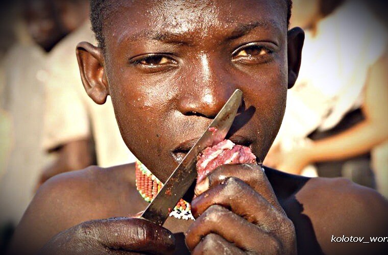 В прошлый раз я начал свой рассказ о племени Хадзабе, которые сотни лет занимаются охотой и собирательством и живут, как первобытные люди (первая часть здесь). Сегодня мы продолжаем знакомиться с жизнью и обычаями этого племени. Вы знали, что женщин и мужчины этого племени меняют супругов каждые несколько лет? Представляете, мужчины считают привлекательнее женщину, которая много дней не мылась.... Но давайте не забегать вперед, итак, очень необычное племя Хадзабе. Люди Хадзабе охотятся на рассвете. Они несут луки и отравленный сок для стрел. Приготовленный из вареной розовой смолы яд на кончике стрелы, достаточно силен, чтобы убить жирафа, но для того, чтобы убить взрослого слона, его недостаточно. Они хорошо знают местность. Они могут зажечь огонь за полминуты, повернув палку в руках. Они до мелочей знают окружающую местность, где живут, но совершенно ничего не знают о мире в целом. Они отслеживают добычу из-за тернистого кустарника. Ночная охота - это настоящий вызов для всех. В э