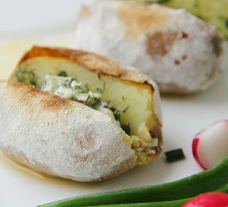 Здесь с начинкой из яиц , майонеза , зелени и чеснока . КАРТОШКА В ДУХОВКЕ КАК ИЗ КОСТРА ! Вот такое хреновое лето ..... Хочется шашлычок под коньячок картошечку из костра и песен под гитару ... Но , вот погода шепчет - сиди дома .... Можно конечно нарядиться как капуста и ехать в лес , но не хватка солнечных лучей и тепла меня останавливают . Хорошо , что в запасе на такие " Хмурые дни " у меня есть рецептик картошки , который ни на грамм не отличается из той , что печем на огне . Даже зола на картошке есть , но она лишь отличается по цвету . Печем такую картошку уже более десяти лет и съедается она всегда в мгновение . Нам потребуется : Картофель среднего размера - 1 кг Мука - 100 гр Соль - 2 ст ложки Дальше необязательные ингридиенты : Водочка Огурчики соленые Сало Селедочка Масло сливочное Зелень Овощи Приступаем ________________ Картофель хорошо моем со щеткой , тк есть ее мы потом будем с кожурой . Смешиваем в глубокой миске муку и