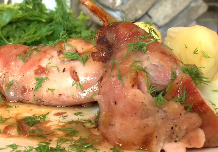 Краткое пошаговое описание приготовления крольчатины с беконом