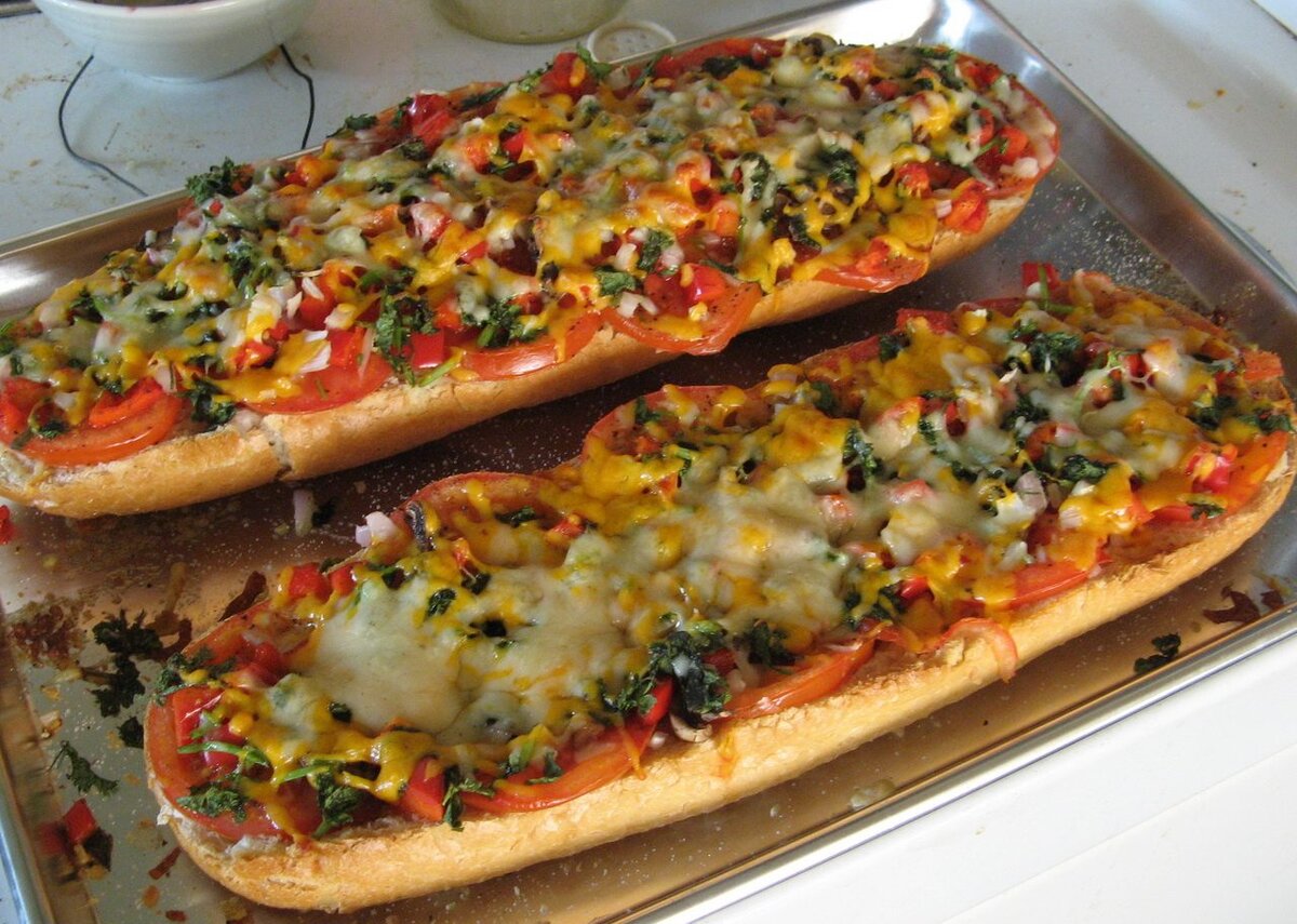 Батон укладываем на противень , и отправляем в духовку на 10 минут