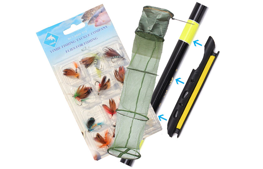 В этой подборке мы собрали традиционно три товара с краткими описаниями, характеристиками и ссылкой на сам товар в магазине AliExpress. Сегодня у нас набор из 12 мушек для нахлыстовой ловли, длинный садок и приспособление для лески при ловле маховым удилищем. Погнали...