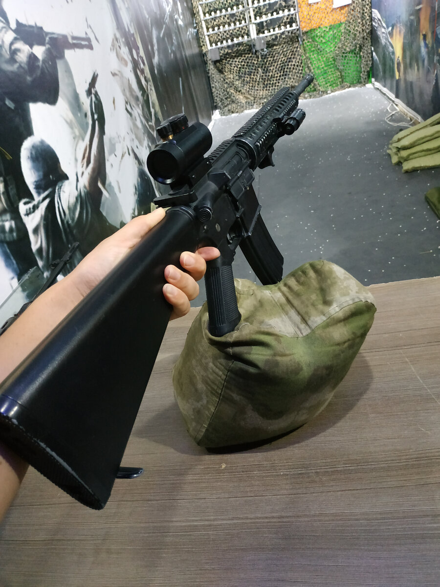 М16 пользуется большой Популярностью у детей из-за ЛЦУ (лазерный целеуказатель) и галлографического прицела. Которые помогают попасть в мишень даже двух-трехлетним детям. Мы помогаем детям ради веселья попробовать пострелять из данных приводов. Девочкам и мальчикам очень нравится стрелять, особенно после своих компьютерных игр ощутить автомат в реальности, ведь он почти на 100% похож на настоящий. Вот так выглядит ЛЦУ на М16, он прикреплен с правой стороны цивья на специальную планку. Так же с нижней части мы прикрепили тактическую ручку для пальца, для удобного обхвата рукой за привод. На М16 стоит галлографический прицел с целевой и красной точкой на выбор. У нас в тире есть 4 основные правила: Если вы желаете ещё больше обзоров страйкбольных приводов то напишите в комментариях, а так же ставьте лайки. Так же какие ещё обзоры вы бы хотели видеть?