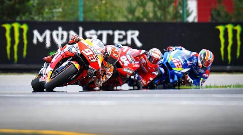 Марк Маркес добыл свою шестую победу в сезоне в чешском Гран-при в Брно, опередив Андреа Довициозо из «Ducati» на 3,5 секунды. Маркес уверенно вошел в первый поворот с поул-позиции впереди Довициозо, итальянец, сделавший характерный быстрый старт с четвертого места на решетке, чтобы обогнать Джека Миллера и Жоана Зарко. Ведущее трио вместе с Алексом Ринсом из «Suzuki» начали отъезжать от остальной части поля, возглавляемой Полом Эспаргаро из «KTM», а Довициозо вплотную преследовал Маркеса. Однако гонщик «Ducati» был не в состоянии нарушить темп Маркеса. Незадолго до финиша Маркес слегка заправил переднюю часть своего RC-213V в 10 повороте, и испанец потерял время, но итальянец был слишком далеко, чтобы воспользоваться помаркой от лидера чемпионата. Затем Марк начал увеличивать свое преимущество примерно на 0,5 секунды за круг, в конечном итоге увеличивая свою выигрышное преимущество до 3,5 секунд, когда он взял клетчатый флаг. Тем временем битва за третье завершилась битвой, в которой