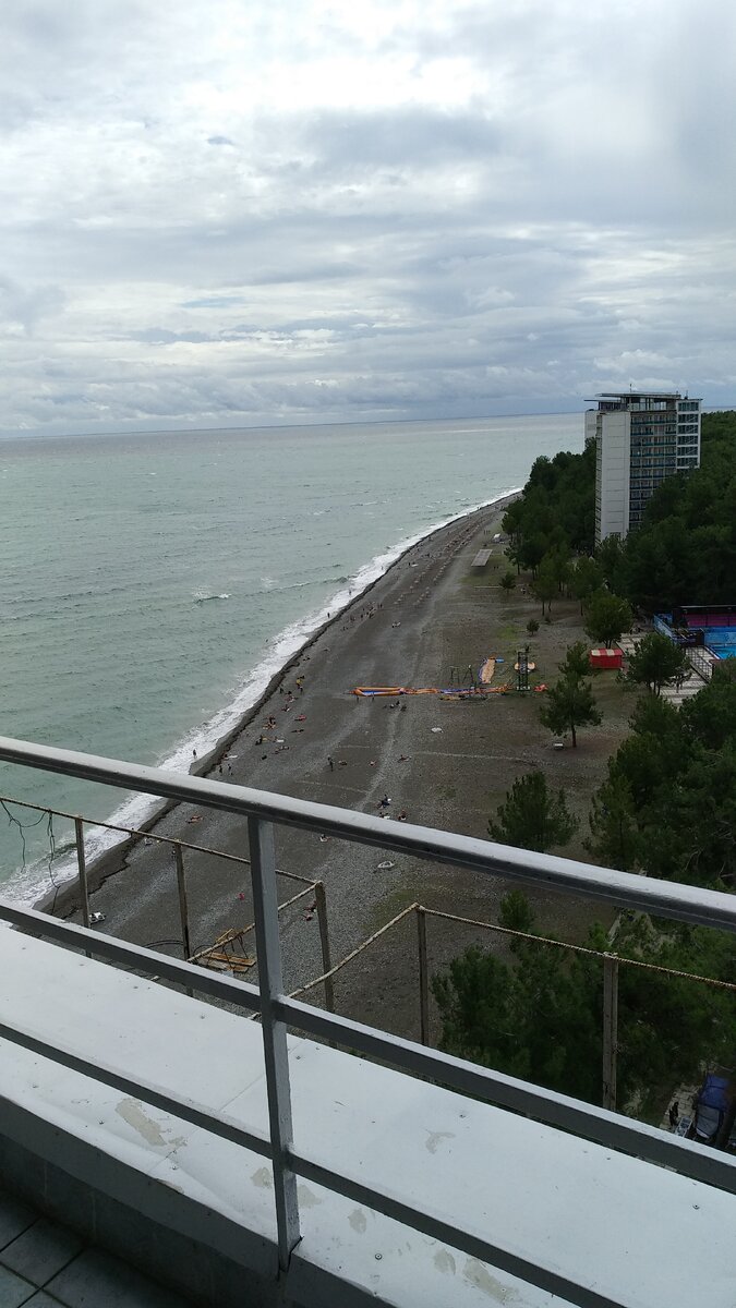 Продолжение истории про отдых в пос.Лдзаа город Пицунда. В отпуске нам с погодой не очень повезло. Штормило и было пасмурно. Решили съездить в Пицунду. Заехали сначала на оптовый рынок и закупились фруктами, овощами, специями. И конечно приобрели домой вина Абхазии и коньяку. На оптовом рынке есть специальные магазины по продаже спиртных и безалкогольных напитков. Цены здесь дешевле, чем в простых магазинах. И народ активно затаривается коробками с заветными бутылочками. Еще есть очень вкусная газировка с различными вкусами местного производства в стеклянных оригинальных бутылках. Что посмотреть в Пицунде. Конечно знаменитый курорт Пицунда. Это комплекс из 7 высотных корпусов с тематическими названиями для размещения отдыхающих. Находится прямо на берегу моря. Там можно погулять и надышаться целебным воздухом пицундской сосны. Специально зашли в корпус "Бзыбь", чтобы посетить известное кафе на последнем этаже здания. Вход совершенно свободный. Взяли там по чашечке заварного кофе (цен