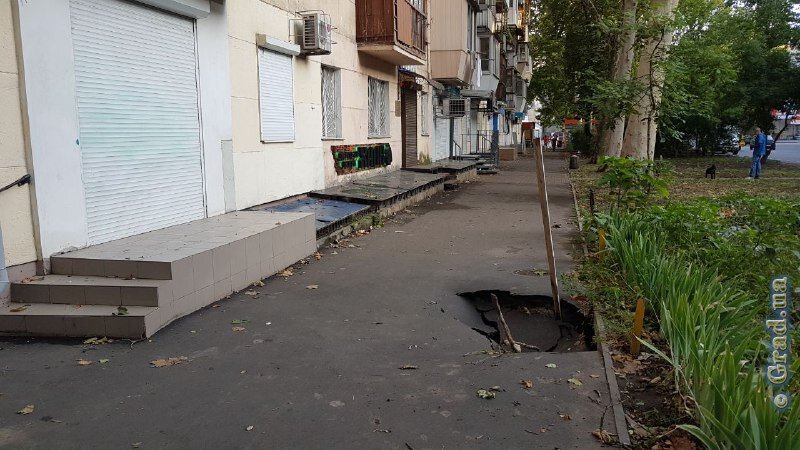 На улице Сегедской, в районе дома № 3, на тротуаре появилась дыра примерно полметра на метр. Местные жители не исключают, что причиной провала стали дожди, накрывшие в выходные Одессу. В ловушку одесситы поставили палку, чтобы в нее не попали пешеходы. Подробности на сайте Телерадиокомпании