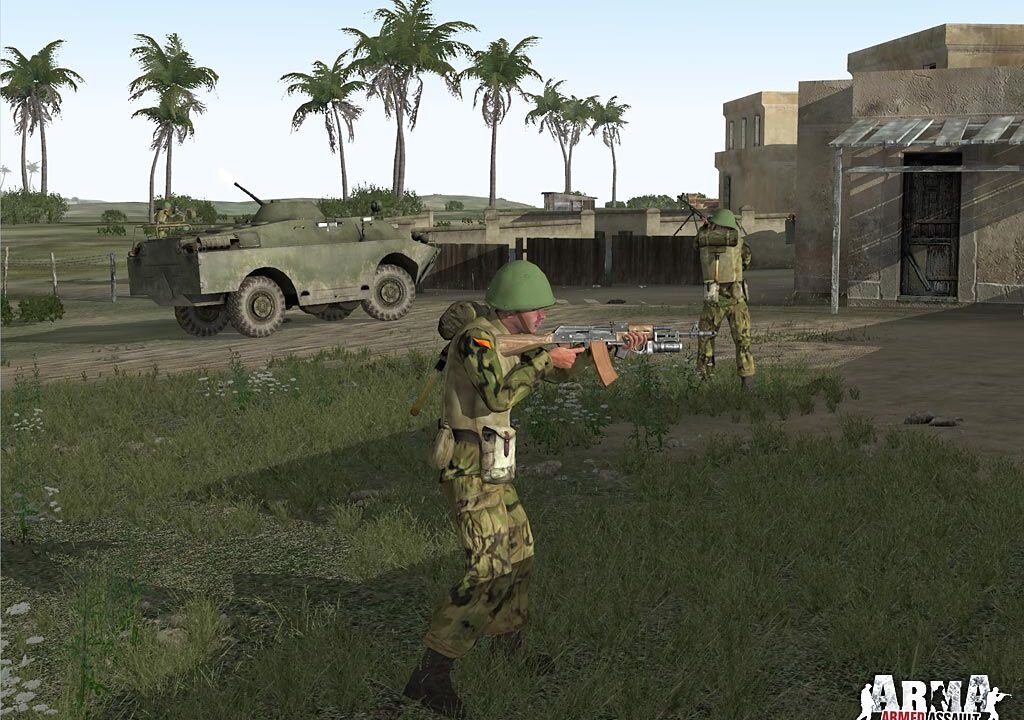 Навесив на свое детище гордый ярлык “Ultimate Combat Simulation”, чехи должно быть имели в виду, что у них полноценно моделируется поле боя. Однако, на мой взгляд, прилагательное “Ultimate” относится скорее не к качеству моделирования, а к сложности игрового процесса. Попасть из обычного стрелкового оружия теперь крайне трудно, потому что существенно увеличился разброс. Даже если вести огонь одиночными, пули ложатся куда угодно, но только не в цель. Самое обидное во всем этом то, что управляемые компьютером солдаты практически не знают промаха и бьют точно в лоб на 200 метров. Единственный способ выжить – постоянно менять положение, перебегать от одного укрытия к другому. Однако с БМП-2 такой трюк не сработает, в Armed Assault они превратились в настоящие машины смерти. Даже если вы просто лежите ночью в кустах, наблюдая за колонной техники, вас все равно засекут и уничтожат. В то же время, у танков я такой зоркости не заметил.