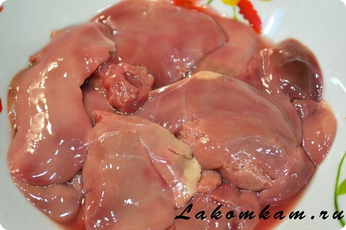 Приготовление печени с яблоками. Печень тщательно помойте, удалите жир и пленку и нарежьте кусками.