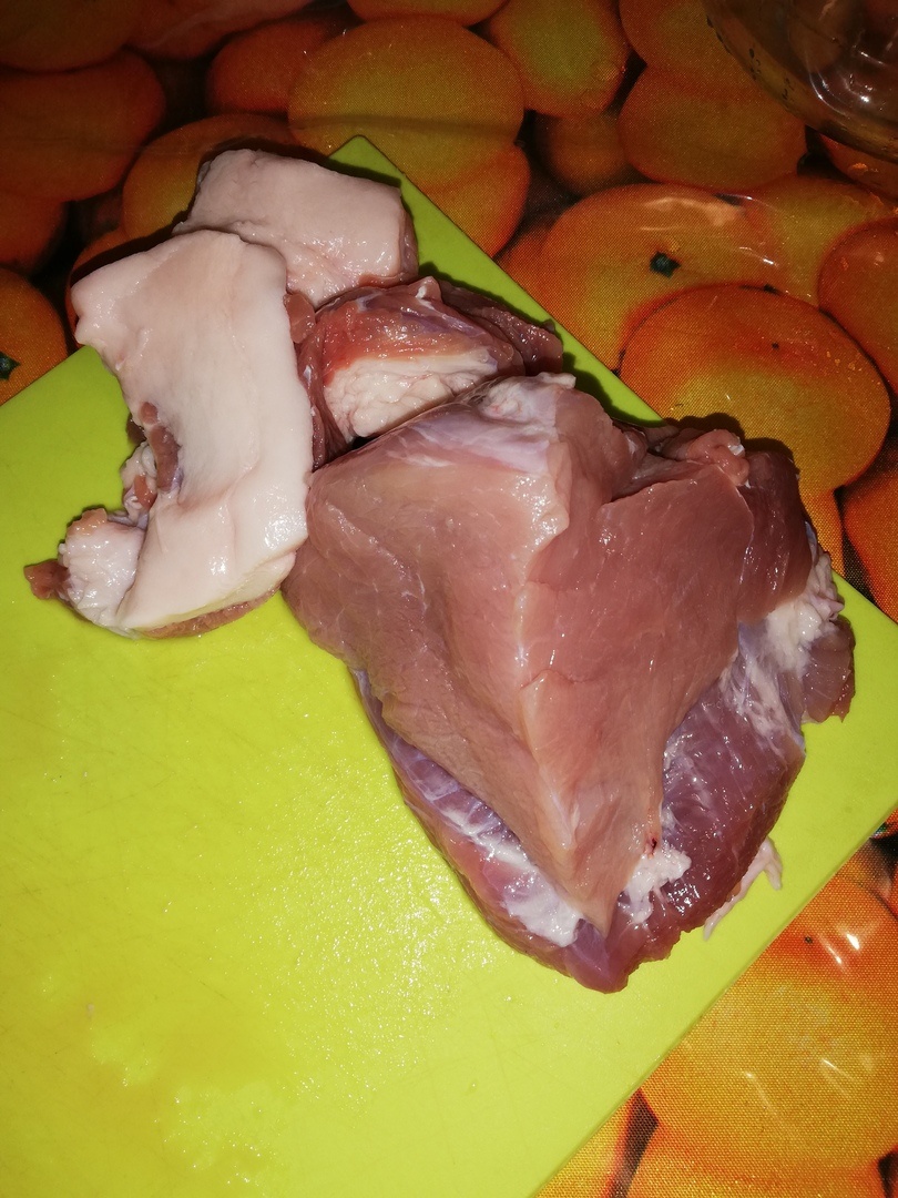 Постный свиной окорок без костей, разрезан кубиками по 7,5 см - 1 кг.
