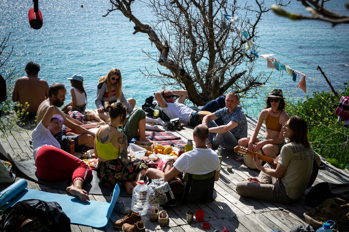 Пригласили однажды друзья на Фиоленте чаю на природе попить. Песни попеть, пообщаться. Вот почему я не могу отдохнуть как все? Поваляться и пощуриться на солнце. Пить чай и улыбаться историям собеседников. Видите на фото человек без футболки сидит спиной, слева на фоне моря? Рад представиться - Мастер Владимирович. Во все свои походы и небольшие вылазки на природу, я беру небольшой набор инструментов. Нож, клюкарзу(стамеску) и небольшой резачок(или нож-косяк). Маленький брусочек или заготовку под ложку. Не всегда можно найти на природе подходящий материал. А тут жена пытается волосы заплести свои, пыхтит что-то под нос и жалуется: - Сделай ка мне шпильку для волос фигурную! Вот что тут скажешь. Тем более и деревяшка подходящая была. Допив чаю отсел немного в сторону чтобы щепки не летели на импровизированный стол и начал мастерить. Откуда эта привычка, не пойму. В кармане ножичек и деревяшка. Чем попросту рассиживаться смотря на море или красоты вокруг, сижу и стругаю наслаждаясь окр