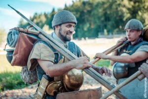 Народная римская частушка. Со школьной скамьи, с 5 класса мы слышали про манипулярный строй римских легионов и то, как легионеры ловко метали пилумы. Главной же особенностью пилумов обычно преподносилась их хитрая конструкция. Пилум, де, имеет очень длинный гарпунообразный наконечник из мягкого железа. Когда он втыкается в щит, крючья или пирамидальное сечение острия не позволяют выдернуть его из пробоины. После чего, внимание, мягкое железо гнётся под весом древка. Пилум торчит в корявом виде из плоскости щита и страшно мешается. Щит бесполезен или малополезен. Его владелец в затруднительной ситуации. Более поздние пилумы устраивались еще хитрее. Их длинный наконечник крепился в древке на двух штифтах: стальной и деревянном. Деревянный штифт при ударе ломался и, читай выше: метательное копьё в гнутом виде болтается на щите. И, вроде бы, все точно. И Полибий упоминает поле боя, усеянное щитами, из которых торчат согнутые пилумы. И археология даёт нам массовый материал испорченных нако