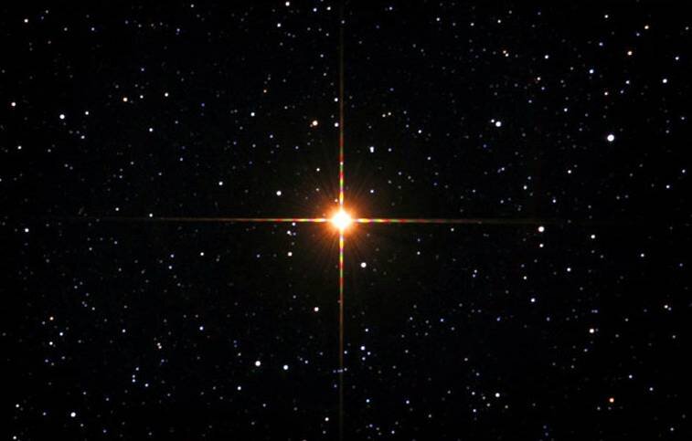 Бетельге́йзе — яркая звезда в созвездии Ориона. Красный сверхгигант, полуправильная переменная звезда, блеск которой изменяется от 0,2 до 1,2 звёздной величины и в среднем составляет около 0,7ᵐ. Красный цвет звезды, легко заметный при наблюдениях невооружённым глазом, соответствует показателю цвета B-V = 1,86ᵐ