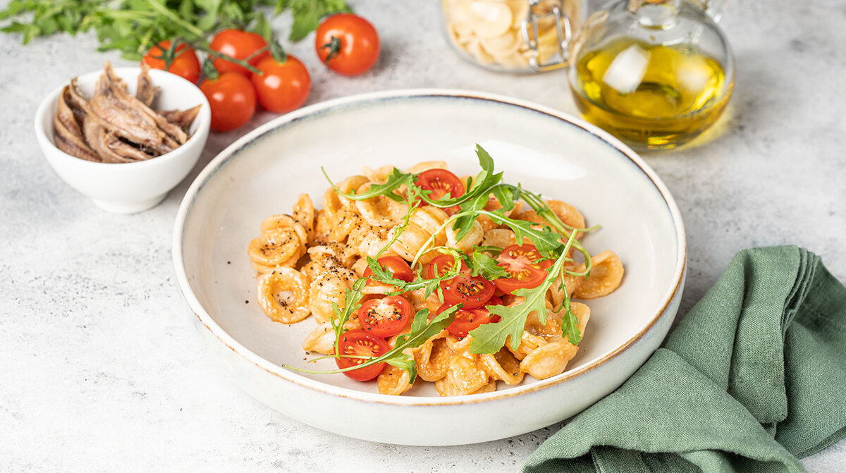 Например, орекьетте - паста в форме крошечной лепешечки с углублением по середине и рифленой "спинкой". За счет этого она идеальна для подачи с соусом, так как соус заполняет серединку и делает блюдо максимально насыщенным.