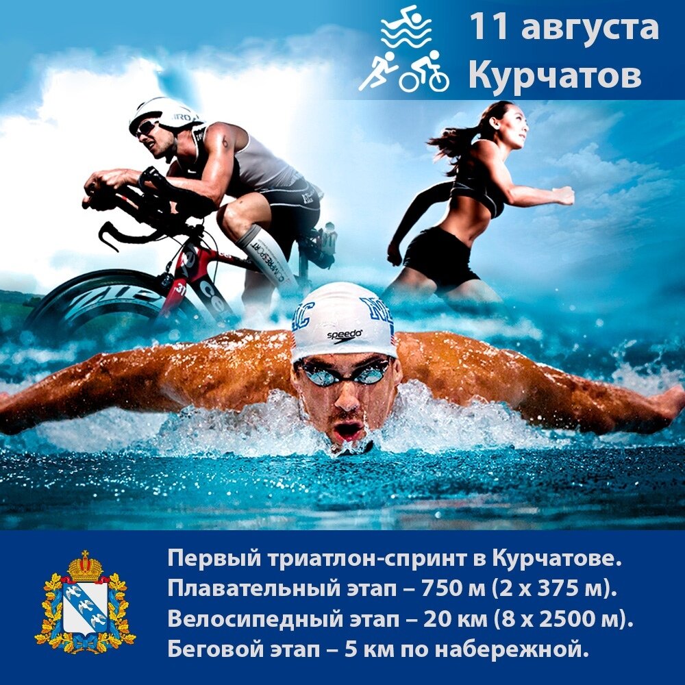 Впервые в Курской области пройдут соревнования по триатлону. Площадкой для состязания сильных телом и духом выбран Курчатов. В это воскресенье, 11 августа, в город атомщиков приедут уникальные спортсмены. Мультиспортивная гонка состоит из непрерывного последовательного прохождения трёх этапов: плавания, велогонки и бега. Спортивное мероприятие организуют на набережной второго и третьего микрорайонов. Участие можно принять как индивидуально, так и в составе команды. Кроме того, специально для детей будут организованы забеги в один круг. Так, 500 метров пробегут дети в возрасте до 7 лет, а километр - дети в возрасте 8-12 лет. А теперь о дистанциях, которые предстоит преодолеть спортсменам и желающим испытать себя. Плавательный этап составит 750 метров, велосипедный этап – 20 километров, бег - 5 километров по набережной. Для участия в соревнованиях необходимо иметь медицинскую справку, договор страхования, паспорт или свидетельство о рождении, а также написать соответствующее заявление.