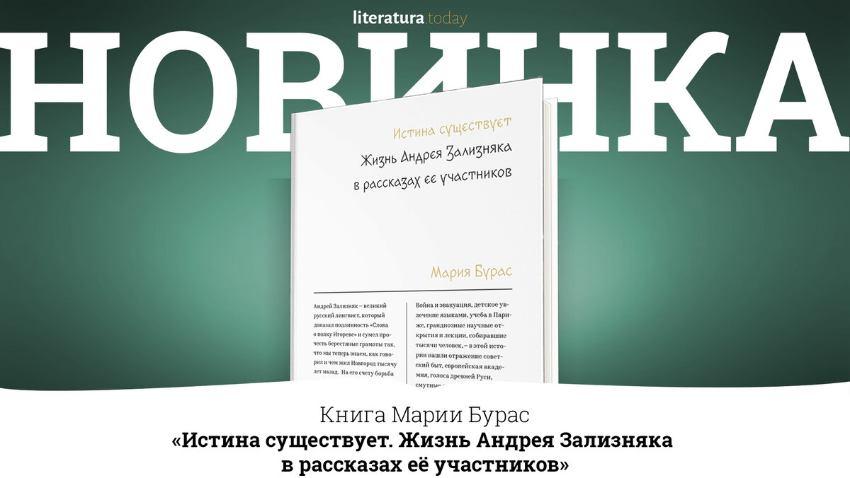 В издательстве Individuum готовят к публикации книгу Марии Бурас «Истина существует. Жизнь Андрея Зализняка в рассказах её участников». В основе произведения биография российского учёного и лингвиста Андрея Зализняка, доказавшего подлинность «Слова о полку Игореве» и создавшего «Грамматический словарь русского языка», легший в основу поискового алгоритма «Яндекса». Автор изучила сохранившиеся документы, пообщалась с близкими и коллегами учёного, кроме того сама она была его ученицей. Книга получилась на грани журналистской и мемуарной литературы, вобравшей в себя воспоминания о герое и рассказы его самого. «Истина существует» — это девиз жизни выдающегося российского лингвиста и первая книга, описывающая его творческий путь.