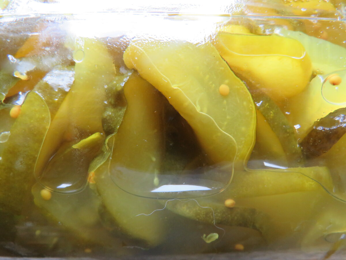 Он хорош для переработки перезрелых толстошкурых огромных огурцов, непригодных для других заготовок. Полученные в результате огурцы идеально подходят для приготовления всяких гамбургеров и чизбургеров - это когда запихиваешь их в булочку между котлетой и кетчупом . Впрочем, есть у меня знакомые и родные, которые кисло-сладкие огурцы за милую душу потребляют без всяких гамбургеров, как закуску, что поделаешь, люди разные бывают, а вся прелесть мира -в его разнообразии.