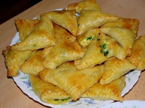 7. Залепливаем края так,чтобы у нас получился треугольный пирожок(края можно немного придавить вилкой)