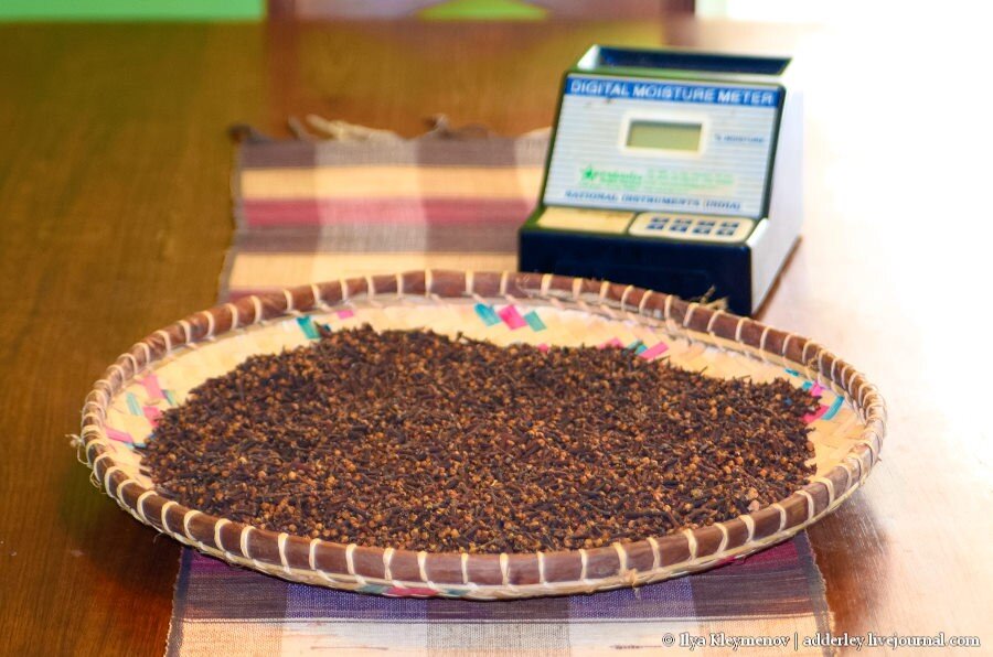 Потери при сушке огромны, порядка 20-25% от начального веса. Стоимость гвоздики на Мадагаскаре сейчас порядка 8 500 USD/тонна. Понятно, что у людей возникает соблазн сэкономить на потерях. Что они д