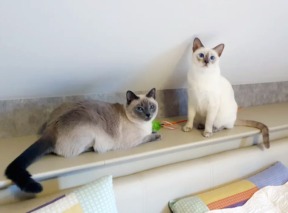 Не хотелось бы так :)))) Поэтому, учитывая, что через два дня мы снова уезжаем и вернемся только через 4 дня, скорей всего хронология будет уже неактуальной и смысл описывать каждую встречу теряется. Буду тогда публиковать события, отличающие одну встречу от другой. И надеюсь всё же, что однажды можно будет без этих временных адаптационных встреч жить котам уже вместе, без моего страха, что кто-то кому-то из котов может навредить :) Когда я сегодня принесла Тишу, два хвостатых сони спали на шкафу и наблюдали за пришедшим сонно и в некоторой степени равнодушно. Впрочем, Стёпка решил таки спустится и обнюхать гостя. Митя остался спать и проспал всё то время, пока Тиша находился в доме. Встреча проходила традиционно: Тиша гулял по дому, Стёпа его всюду сопровождал. При этом Стёпа так смотрел на Тишу... Без напряжения, без злости, он иной раз так на Митю смотрит, когда тот какие-то хулиганс