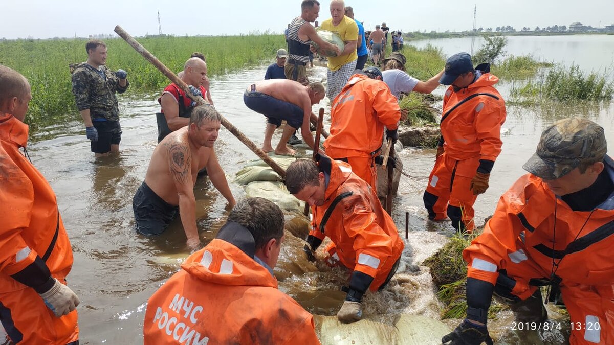 В Амурской области спасатели ДВРПСО МЧС и местные жители защищают села от паводка