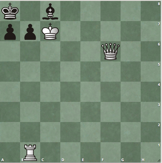Черные в углу зажаты, мат неизбежен, сдаваться они не захотели, видимо надеются на пат, однако патом здесь не пахнет. Вам необходимо найти ход за белых, который приведет к мату на втором ходу вне зависимости от хоад черных. Дерзайте! задача уровня 2 (по 10-балльной шкале Чеснока), если решили предыдущие задачи, эту решите за 30 секунд! ______________________________________ Подсказка: жертвуем ферзя без зазрения совести на а6, затем в любом случае мат, а у черных несколько вариантов хода. Как называется такая ситуация? k1Q5/p1K5/1p6/8/8/8/8/1R6 b - - 0 2 Ответ: Проанализировать задачу можно здесь Играйте в шахматы, ведь это так развивает нас как личность!