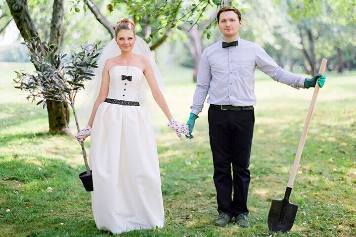 Традиция сажать дерево в день свадьбы пришла к нам еще от наших предков. В то время, когда многие свадебные обычаи канули в лету, церемония посадки первого семейного растения сегодня пользуется огромной популярностью. Если вы хотите сделать вашу свадьбу яркой и незабываемой, заранее оговорите со свадебным менеджером идею о проведении такого уютного и красивого обряда. Спланировав, как посадить дерево на свадьбе, вы заложите крепкий фундамент вашей семейной жизни. Особенно эта процедура будет выглядеть красиво, если вы планируете праздник летом, например в июне. Значение разных видов деревьев Какое посадить дерево на свадьбе, на какие сорта и виды обращать внимание? Вы можете выбирать свое первое семейное растение в зависимости от собственных предпочтений, или же немного «покопаться» в истории этой традиции и узнать, какие виды было принято сажать ранее. В старину наши предки отдавали предпочтение высоким и крепким деревьям (вяз, дуб, клен) либо же высаживали фруктовые. Каждому виду ра