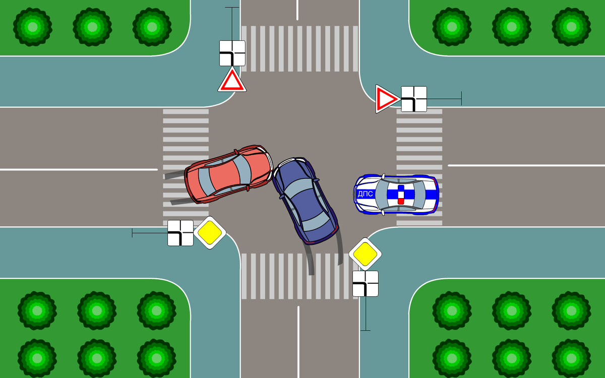 Всем, привет! Сегодня в очередной раз предлагаю вам пройти видеотест на знание правил дорожного движения. Как всегда перед вами будет пять анимированых роликов с дорожно-транспортными происшествиями, вам необходимо внимательно посмотреть ролик и верно определить виновника аварии. Если перед вами серая картинка, тогда дождитесь пока загрузится анимация. И так поехали! Вопрос первый. Кто виноват в ДТП? 1. Красная машина 2. Синяя машина 3. Серая машина 4. Синяя и красная машины Комментарий: на этом перекрестке неравнозначных дорог (знаки: 2.1 "Главная дорога", 8.13 "Направление главной дороги и 2.4 "Уступи дорогу) красный автомобиль должен был уступить дорогу синему автомобилю, находившемуся справа, который также как и красная машина, двигался по главной дороге, и, следовательно, в данной ситуации надо разъезжаться по правилам проезда перекрестков равнозначных дорог (п. 13.10 и п. 13.11 ПДД). Серый автомобиль верно уступил дорогу, поскольку подъезжал к перекрестку по второстепенной доро