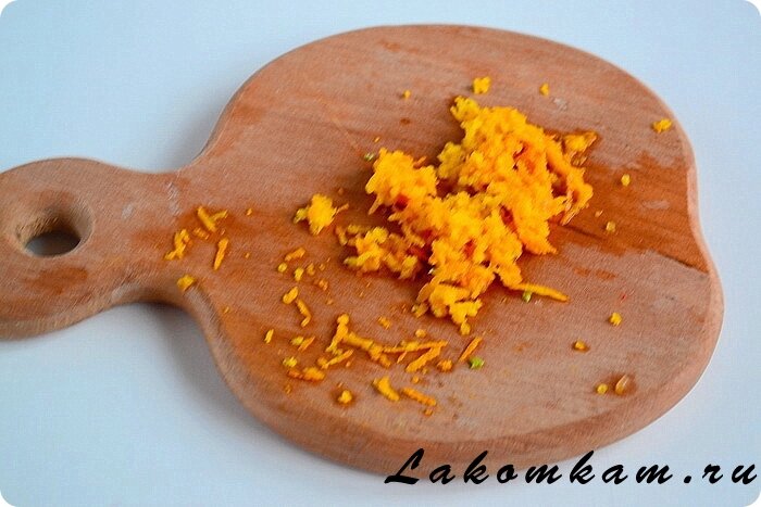 С мытого апельсина снимаем цедру при помощи мелкой тёрки.