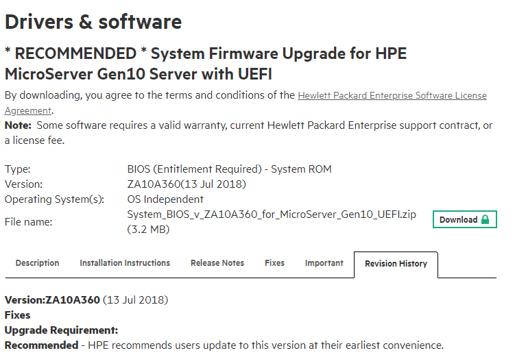 Инструкция с фотографиями по обновлению BIOS сервера HPE ProLiant MicroServer Gen10. Перед началом прошивки убедитесь в том, что сервер включён в ИБП, иначе есть риск превратить полезную вещь в кирпич. Качаем свежую прошивку BIOS сервера HPE ProLiant MicroServer Gen10: