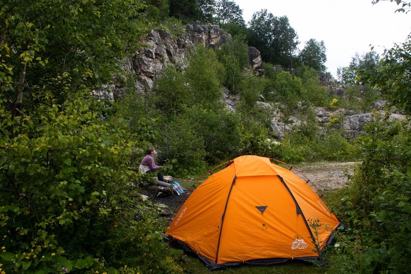 15:00. Наконец-то выходим на поляну, скидываем рюкзаки, и так хочется поскорее вытянуть ножки. Но есть важное правило – сперва ставим палатку, потом расслабляемся.