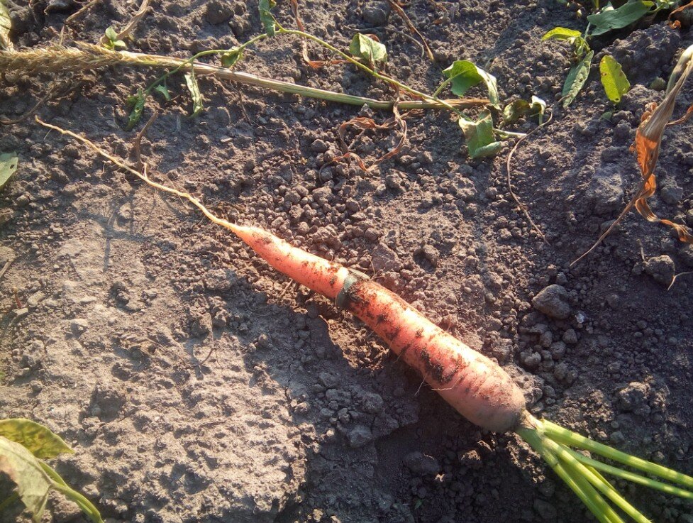 Несколько раз видел в Интернете фотографии, где на морковке обнаруживалось потерянное много лет назад кольцо. Обязательно приводилась красивая легенда, например: Мистер Хиггинс подарил своей жене кольцо, а потом ушел на фронт. Но миссис Хиггинс случайно потеряла это кольцо в своем саду, когда подрезала розы. А спустя 70 лет совершенно случайно ее правнучка обнаружила это кольцо на морковке, принесла прабабушке, та его узнала и хеппи енд. В моих закромах есть фотокарточка примерно пятилетней давности. Мои соседи по осени выкапывали овощи и на одной из морковок тоже обнаружили колечко. Позвали соседей, чтобы похвастаться. Меня тоже позвали. Только там кольцо не обручальное и даже совершенно не золотое. Хотя, возможно оно даже интереснее некоторых золотых будет. На морковке застрял небольшой перстенек "трехточечник". Подобные перстеньки были популярны среди простого населения с 17 до 19 веков. А огород, сами понимаете, долгое время хранит в своих недрах и монетки, и колечки, и крестики