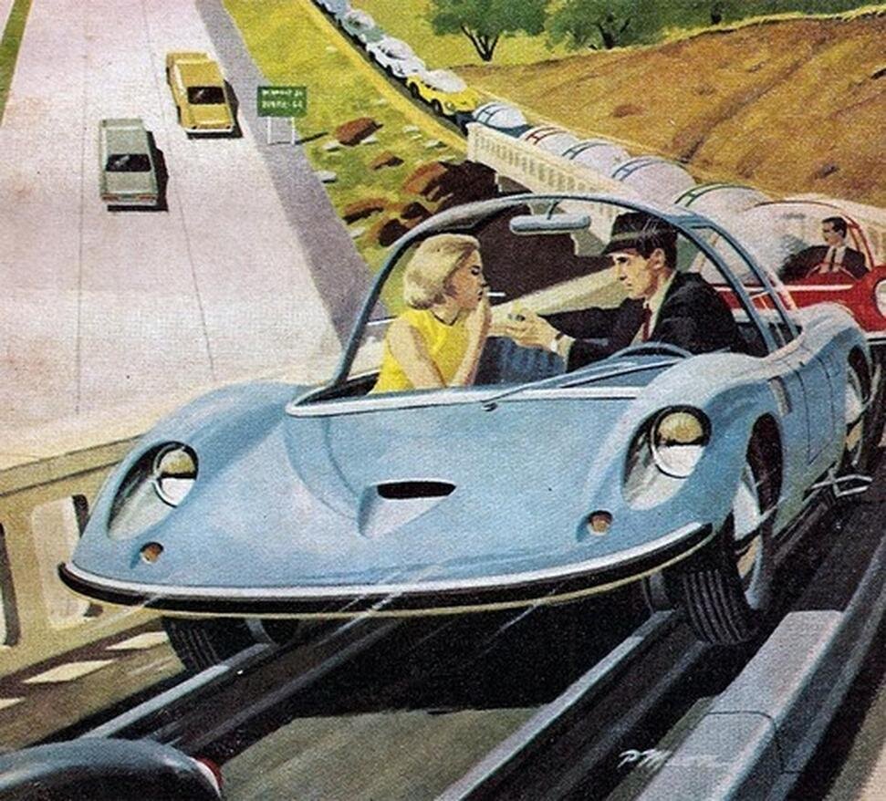 Вторая по порядку утопическая идея в рамках проекта "Идеи Недалёкого Будущего", одна из наименее реализуемых в ближайшем будущем. Её название, конечно, говорит само за себя, но может слегка ввести в заблуждение. Смысл идеи совсем не в рельсах, а в индивидуальном транспорте, который двигается по особым дорогам и управляется централизованной (городской) автоматической системой. Но рельсы подходят как нельзя кстати. Человек должен полностью быть исключён из управления, он только лишь указывает конечную точку, садится в автомобиль и больше ни о чём не думает. Городской транспортный компьютер заранее простраивает маршруты каждой единицы транспорта и направляет потоки оптимальным образом. Главное преимущество такой системы в том, что под строгим управлением компьютера без человеческого фактора легко можно сделать такую экстремальную вещь, как перекрёстки, которые проходятся на полной скорости всеми участниками движения. Через одного. Вжух-вжух. Никаких пробок, остановок, светофоров, ожида