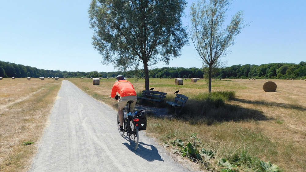 Diddi был прав. Не стоит думать о скатывании проволоки на ухабистой трассе. На зеленой велосипедной дорожке, которая когда-то проходит по всему городу Франкфурт, самый крутой участок гор проложен в Энкхаймер-Рид с грубыми и остроконечными гравийными камнями. Обе тормозные ручки крепко держатся в руках, мы продвигаемся вперед и ухабисто спускаемся по крутой тропе. Человек и материал хотят быть избавлены. В конце концов, почти две трети 64-километрового маршрута все еще впереди.