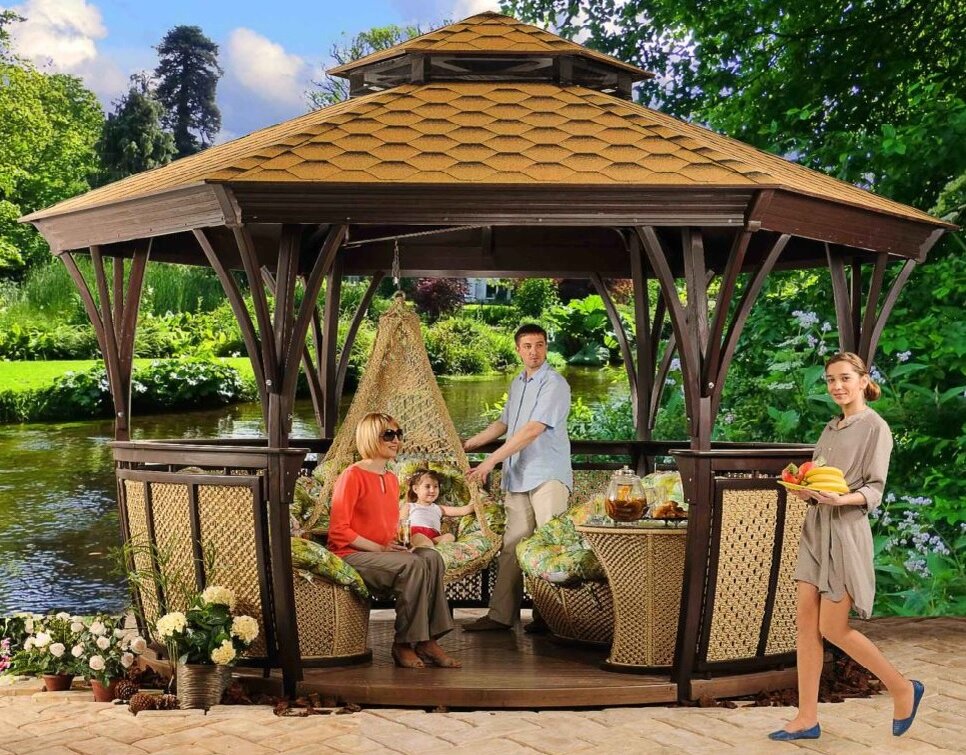 Практически каждый владелец загородного дома хочет возвращаться после тяжелого рабочего дня из суетливого и запыленного мегаполиса в уютную обстановку. Кроме того многие согласятся, что нет ничего лучше после напряженного дня, чем провести часок в беседке, попивая горячий чай и читая газетку или же выкурить сигаретку с кофе на свежем воздухе. На выходных можно собрать друзей или родственников и устроить небольшой праздник, при этом пожарить шашлыки и насладиться ими в беседке. Однако для совершения этих мечтаний необходимо приложить немного усилий, чтобы возвести заветную беседку. Данная постройка отлично впишется в любой загородный участок. Когда на улице начинает припекать солнце и люди переодеваются из тяжелых свитеров и теплых джинсов в шорты и футболки, наступает пора, когда можно разделять трапезу со своей семьей на свежем воздухе. Согласитесь, намного приятнее принимать пищу в такой обстановке, да и аппетит нагуливается намного быстрее. Для постройки беседки необходимо учесть